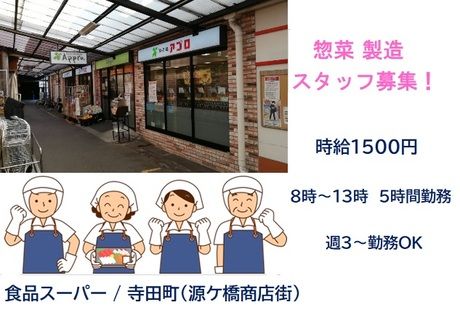 食品スーパー / 大阪 寺田町(源ヶ橋商店街)お惣菜製造スタッフ募集 時給1500円 8時~13時