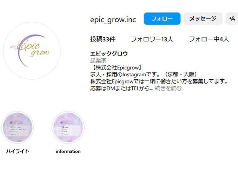 仕事内容 ☆*営業で本気で稼ぐチャンス!学生インターンも歓迎!未経験からの成長を応援*☆ 「お財布にお金がなくてピンチ…!」 「次のイベントまでに稼いでおきたい…」 そんなあなたにピッタリの募集です! 今回募集するPRスタッフは、イベント企画やお客様へのご提案などをメインに担当いただきます。 商品のご案内を通して、社会人になってから必須となる「対人スキル」や「営業スキル」をイチからしっかり学べます! 株式会社エピックグロウは、イベント企画運営やプロモーション企画など、さまざまな事業を展開中。 年に数回、海外リフレッシュ研修も実施しており、過去にはバリ、韓国、オーストラリアなどへ行った実績も! 仕事も遊びも全力で楽しむことができる職場です。 さらに、代表との距離が近く、意見やアイデアをどんどん発信できる環境です! 裁量が大きく、営業としてノビノビと活躍できるフィールドが広がっています! 「企画や営業のお仕事にチャレンジしてみたい!」という意欲があれば、経験は一切不問! 実際に未経験からスタートした先輩も多く、今では業界の最前線で活躍しています。 あなたの熱意やポテンシャルを重視した採用なので、面接では積極的に自分の魅力をアピールしてください! Instagram(@epic_grow.inc)では、業務に関する不安や疑問を画像でわかりやすくお伝えしています!ぜひご覧ください★ 公式Instagram:「エピックグロウ」で検索!