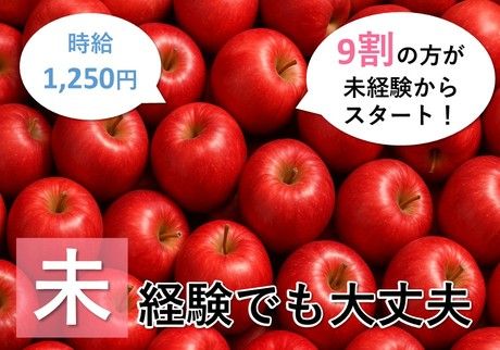 仕事内容 ~先行受け付け中~ 《2026年1月中旬スタート》 期間限定!! 2026年4月末位までのお仕事です。 戸倉駅から歩いて2分の距離にあるので電車での通勤も可。 リンゴの選別、検品作業です。 もくもくと作業するのが好きな方、 未経験でも短期で稼ぎたい方、 コツコツ頑張るあなたを応援します! ・・・・・・・・・ここがオススメ!・・・・・・・・・ 〇時給1,250円 〇短期のお仕事(~2026年4月末日ごろまで) 〇もくもく作業 〇うれしい土日休み 〇職場見学できます 〇20代、30代、40代、50代、60代の男女活躍中 〇駅チカ 〇未経験OK ・・・・・・・・・・・・・・・・・・・・・・・・・・ 【仕事内容】 ベルトコンベア上を流れてくる製品の選別、 原料の投入、 製品の包装、梱包、移動などの作業を行います。 ※立ち作業でのお仕事です。 あまり難しい作業はありませんので、未経験の方でも働きやすいお仕事です。 仕事は立ち作業なので体を動かす仕事をしたい方にオススメです。 【こんな経験があれば活かせます】 〇製品の仕分けパート・アルバイト 〇食品製造パート・アルバイト 未経験・ブランクがある方も大歓迎! 特別な経験やスキルは必要ありません。 【その他】 日勤の時間帯のお仕事です。 勤務地は千曲市戸倉駅近くなので 通勤しやすい場所です。 ※食品を扱いますので、身だしなみ規定があります。