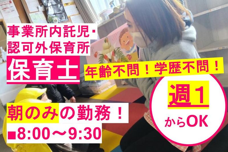 【アピールポイント】 朝のみ勤務の保育士募集! ■週1日からOK! ■年齢不問 ■学歴不問 ■ブランクOK! ■事業所内託児所あり