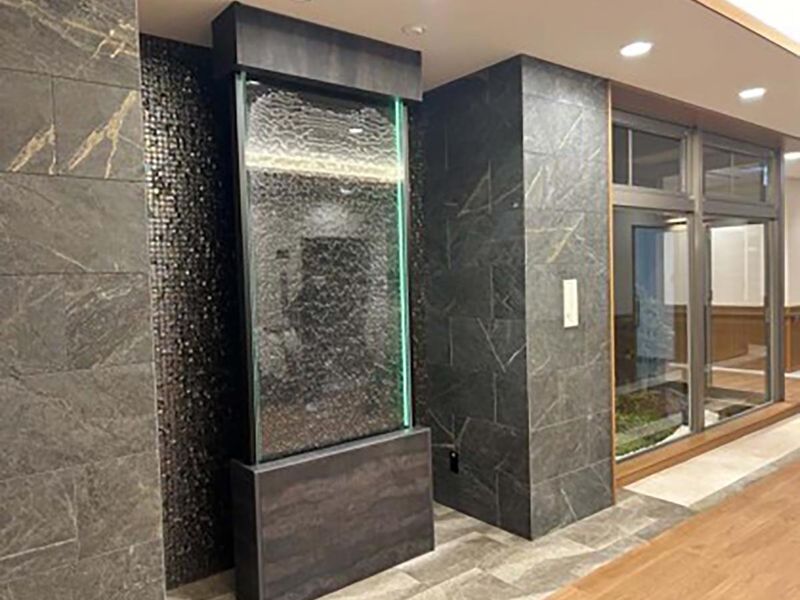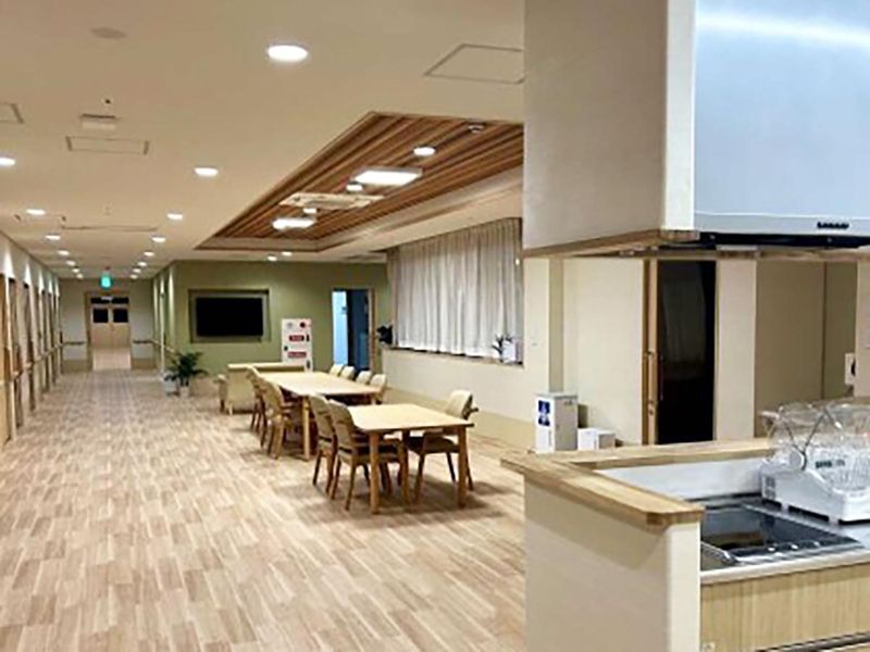 職場環境 建物の1Fはデイサービスで、 2F・3Fが特養になっています。 新しくてキレイな室内からは 枯山水をイメージした日本庭園も 見えて、落ち着いた雰囲気♪
