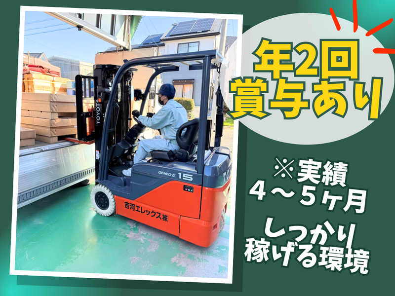 求めている人材 ■未経験歓迎 ■学歴不問 ■第二新卒者 ■社会人未経験OK ■要運転免許(AT可) 【 必須 】 ◎日本語でのコミュニケーションが取れる方 (社内業務で日本語を使用するため) ◎N3/日常会話がある程度できる方 You must understand basic Japanese (JLPT N3 level). 【 こんな方に向いています 】 ☑ 手に職をつけたい ☑ 安定企業で長く働きたい ☑ コツコツ取り組む仕事が好き ☑ リフトの運転に興味がある ☑ 工業高校・理系出身の方も歓迎 ※資格は入社後取得も可能 (会社が取得費用をサポートします)