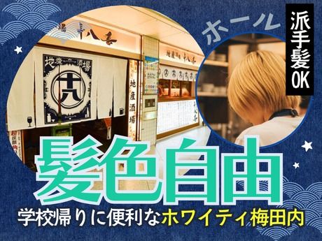 仕事内容 ここだけ見たらわかる求人ざっくり総まとめ♪ ■梅田駅直結の地下街!ホワイティ内での勤務◎ ■未経験OK!ホールスタッフ募集中! ■時給1300円~!22時以降は時給25%UP(時給1625円) ■週4日×5h勤務で月収10万円以上も可能♪ ■日本語でのコミュニケーションができればOK ※ご注意※ こちらの求人は、ホワイティ梅田内にある 「地場酒場 十八番(じゅうはちばん)」の募集です。 同名「十八番」の別店舗とお間違えないようご注意ください。 【当店へのアクセス】 ホワイティ梅田のノースモール1にございます! ドトールさんやミスタードーナツさんが並ぶ通りを 歩くと、白いのれんに「十八番」と書いたお店が見えてくるはず! H-40が一番近くの出口になり、ヘップファイブとつながる H-30からは、ビアードパパさんを左折して歩いていくと到着です! ホールスタッフの仕事内容について ・お皿の片づけ ・テーブルを拭いたりメニューをセットする作業 ・料理の配膳 など こぢんまりとしたお店なので、 広い店内をばたばたすることはありません。 【入社後の流れ】 まずは、店長や先輩スタッフが一緒について 席の番号や順番を覚えるところからスタート! メニュー名は、料理を配膳していくうちに 自然に覚えられますよ! 勤務中は一人きりになることは全くないので、 業務で困ったことがあればいつでも相談できる環境です。 2週間ごとの自己申告シフトで働きやすさ抜群! 週3日~無理なく勤務OK! ディナータイムや土日祝に働ける方大歓迎♪ シフトは2週間ごとの自己申告制なので、 先の予定が立てにくい方でも安心◎ 学校行事や体調不良、部活・サークル、 親の介護、送迎、通院、Wワークなど… どんな事情でも柔軟に対応可能です。 土日祝だけの勤務や曜日固定もOK◎ 自分のライフスタイルに合わせて働けます! 一緒に働くスタッフのこと 10代~20代の学生さんやフリーターさんが中心に活躍中! 気さくでフレンドリーなスタッフばかりなので、 相談しやすい雰囲気です。 わからないことは何回でも聞けて、 初めてのアルバイトでも安心♪ 失敗しても「あるある!」 と笑ってくれる先輩がいるので、 サポート体制もバッチリです。