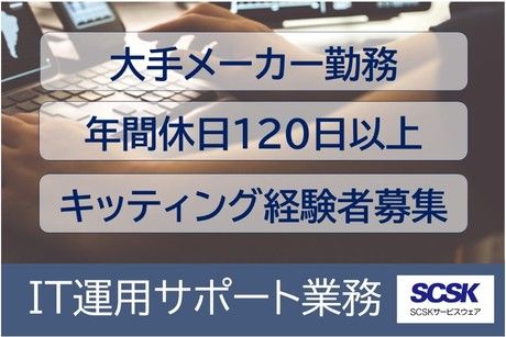 仕事内容 \ おすすめPOINT / ◆月給28万8000円以上または時給1,800円以上 ◆完全週休2日制(土日休み) ◆残業代1分単位支給 ◆資格取得支援制度・正社員任用制度あり ◆服装はビジネスカジュアルでOK ――――――――― ◆ お仕事内容 ◆ ――――――――― 寝屋川市にある大手メーカーの拠点にて、 PCのキッティングやアカウント管理を中心とした、 IT運用サポートチームに加わっていただきます。 【具体的な業務内容】 ・PCのキッティング/初期設定/データ移行サポート ・アプリケーションのインストール ・各種システムのアカウント登録/変更/削除 ・各種システムの設定変更作業 ・PCや関連機器の返却処理 ・マニュアルの作成/更新 その他、社員からのITに関する問合せ対応などもお願いします。 <業務内容>変更の範囲 会社の定める業務内容 ___________________ 「ここでの経験」が、あなたの資産になる  ̄ ̄ ̄ ̄ ̄ ̄ ̄ ̄ ̄ ̄ ̄ ̄ ̄ ̄ ̄ ̄ ̄ ̄ ̄ 当プロジェクトでは、単なる作業に留まらず 効率的なキッティングフローの構築や 新しい管理ツールの導入など フラットな関係性でアイデアを出し合える環境です。 SCSKグループという安定したバックボーンのもと、 大手企業のIT運用を支える醍醐味を ぜひ肌で感じてください。 \働きやすいと好評!休暇制度が充実/ 年間休日120日以上! 完全週休2日制で、毎週末は必ずお休み。 GW・夏季休暇・年末年始などの長期休暇もあります。 入社1年後には、 「メモリアル休暇」 「エデュケーショナル休暇」 「連休サポート休暇」など 通常の有給とは別に取得できます。 平均有給取得率は80%以上! お休みも取得しやすい環境です。