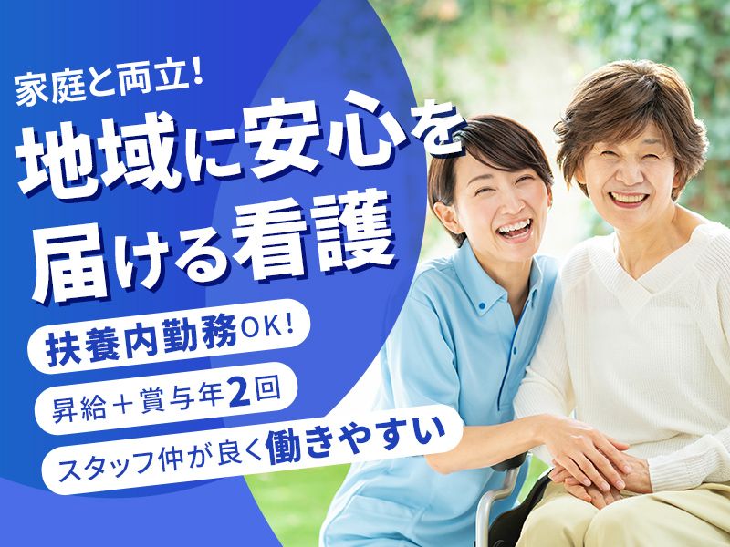 仕事内容 ◤ ̄ ̄ ̄ ̄ ̄ ̄ ̄ ̄ ̄ ̄ ̄ ̄ ̄◥ 2011年創業の安定企業♪ 家庭と両立しながら、 地域に安心を届けるお仕事! ◣_____________◢ \この求人のPOINT/ ✅扶養内勤務OK!働き方は柔軟に ✅スタッフ仲が良く人間関係良好♪ ✅昇給年1回+嬉しい賞与年2回 ✅資格があれば実務未経験者歓迎 ✅OJT研修で安心のスタート! <仕事内容> 利用者様のご自宅に訪問し、健康の維持や 回復までの治療が効果的に安心して 受けられるよう、療養上のケアや管理、 医療相談を行います。 <教育制度> 訪問看護ではOJT研修として 先輩スタッフとの同行訪問を実施します。 利用者様の引継ぎを通して 実際の業務を覚えていきましょう! (同行期間は訪問先により変動) 別途、月1回(30分〜1時間程度)の 研修もご用意しています! <働く環境について> 人間関係・職場の雰囲気が魅力✨ オープニングスタッフとして 立ち上げから働く方が多いです! 5年後・10年後の姿をイメージして どのように働きたいかなど、 熱い思いを持っているスタッフが 活躍してくれています。 *スタッフ43 名在籍 *30代活躍中&40代活躍中 *50代活躍中