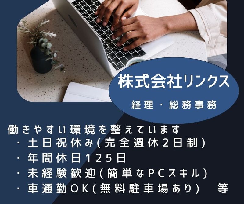 メッセージ ●経理事務・総務担当をお願いします ●土日祝休みの完全週休2日制です☆彡 ◎年間休日125日ありますので、 プライベート充実できます☆ ~~~~~ ◎基本的なExcel・Wordのスキルや 簡単な文書作成等出来る方 ご応募お待ちしています ~~~~~ ◎未経験からでもやってみたいと思っている方、 ぜひ一緒に働いてください ◎また、異業界の方からの応募も歓迎いたします =========== 会社の特徴 =========== メンバーそれぞれが自分の得意なことを活かして 協力しあいチームで仕事をしています お互いの特性や才能を尊重しながら 共通の目標に向かって仕事に取り組みます そして仕事を通じて新しい知識や技術を 学んでいきます =========== ▽▽▽▽▽▽▽ ☆こちらのお仕事は、 企業様からお預かりし 転職エージェント『しごと計画学校』が ご紹介するお仕事です 『しごと計画学校』については 下記「その他欄」に記載しておりますので ご参考ください 土日祝休みの完全週休2日制!簡単なPCスキルがあれば経験問いません! 労働者派遣事業(派33-300443) 職業紹介事業(33-ユ-300208)