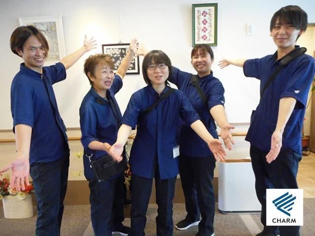 仕事情報 ● 仕事内容 介護スタッフは、ご入居者様により充実した生活を送っていただくために生活の支援全般を行います。 その中で、入浴介助を中心に、入浴介助に伴う身体介助や移乗、浴室の清掃、排泄介助など担当していただきます。 業務の効率化で負担軽減 一人一台スマートフォンを貸与して、介護記録を素早く簡単に入力できるシステムを導入しています。 ケア記録や、関連する各種記録が見易いので、ご入居者様の毎日の様子を全員で把握し介助を進めています。 電子機器の文字入力に慣れていない方でも、簡単に操作出来るシステムなので、ご安心ください。 会社情報 近畿圏、首都圏で有料老人ホームを運営するチャーム・ケア・コーポレーションは、高齢者生活サービスを中心として、お客様の価値観を大切にし、お客様にあった魅力的な生活を提案しています。 「Charm=魅力」の社名には、魅力的な介護や生活を提案する想いが込められています。 採用メッセージ ★わたしが「幸せ」であるからこそ、みんなを「幸せ」にできる。★ 自分が「幸せ」だと「心の余裕」が生まれ、「心の余裕」があると「より良いサービス」ができるという考えのもと、スタッフにとって働きやすく、ご入居者様にとって暮らしやすい環境を追求しています。 ホームの特徴 ★チャーム栗東の特徴★ 2024年10月オープンの、居室数80室の中規模ホームです。 最寄りの栗東駅から徒歩約10分、商業施設も充実しているエリアのホームです。