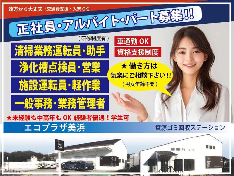 仕事内容 2026年スタッフ募集! <業務拡大に付き、スタッフ募集 未経験OK> <入社3年/20代>年収400万円以上の実績あり! ・働き方改革!融通の利きやすい職場! ・社会貢献しながら働けます! ・景気等にも左右されにくく、長期安定して働けます! ・20代~60代まで活躍中!もちろん50才以上の方も大歓迎! <定年制なし><車通勤OK> 休日は、相談可能です! 仕事&プライベートとの両立が可能です! 【地域環境の整備員】 ★清掃車の運転、巡回点検作業をお願いします。 経験、資格やスキルに合わせた業務を お任せします。 作業内容例… ・リサイクル・ゴミの収集、運搬 ・浄化槽の清掃 ・浄化槽の保守点検 ・公共施設の簡単な作業 知多半島南部における環境整備事業に 関わるお仕事です! アピールポイント 創業66年の安定企業! 公共事業で安定した勤務が可能です! 【市町村の認可事業】です! ★年齢不問! ★地域貢献できるお仕事! ★土日休みOK!(選択OK) ≪こんな方活躍・歓迎≫ ・営業経験のある方歓迎 ・第二新卒歓迎 ・フリーター歓迎 ・社会貢献したい方歓迎 ・融通の利く働き方がしたい方歓迎 ・男女、中高年活躍中