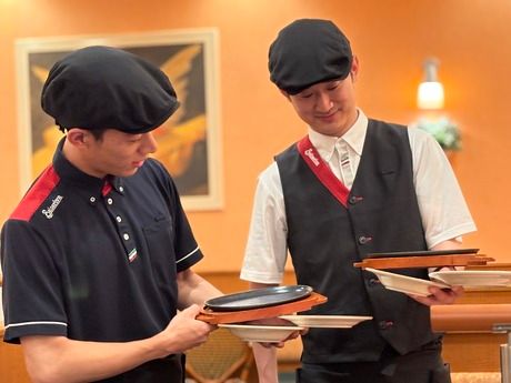 【保険制度】 雇用保険、労災保険、健康保険、厚生年金 待遇・福利厚生 【福利厚生】 ◆アルバイトさんの有給取得率は全国トップレベル!お休みして もお給料がしっかり確保できます! ◆食事補助は勤務初日から50%OFFで利用可能!さらに給与天引きの後払い制★ 人気のミラノ風ドリアはなんと 150円でたべられます。 ◆全席禁煙