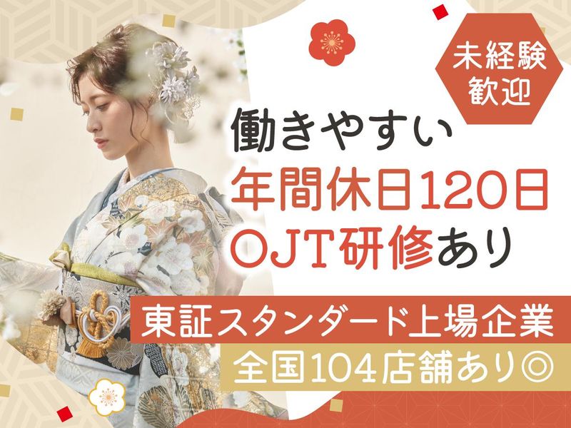 仕事内容 ✅トレンド振袖を自由にコーディネート ガーリー、クール、レトロなど、 6万点以上のアイテムから 「運命の1着」を作っていくお仕事✨ ✅東証スタンダード上場企業の直営ショップ 安定した経営基盤のもと、 目指せるキャリアを築けます✨ ✅個人ノルマなし!心に寄り添う接客 数字に追われるのではなく、 お客様の「晴れの日」を一番に考えられます♪ ✅フレックスタイム制/年間休日120日 月8〜10日休みで、プライベートや 趣味の時間も大切にできます。 ✅未経験からプロへ育てる万全の体制 座学から着付け研修まで、 3〜6ヶ月かけて丁寧に育成します✨ ******************* ◆仕事内容◆ 王道の古典柄から、最新のヴィンテージ、 ガーリー、クールなモードまで。 一蔵がデザインから手がける 6万点以上のアイテムの中から、 帯ひとつ、髪飾りひとつにまでこだわり、 お客様と会話しながら 「運命の1着」を形にしていきます。 単なる「販売」ではなく、 一生に一度、ハタチの節目を彩る 『最高の思い出』をプロデュースするお仕事です。 ******************* ◆具体的な仕事内容◆ 【じっくり向き合う接客スタイル】 完全予約制で、1組あたり2〜3時間かけて 丁寧に応対します。 平均10着ほどのご試着を行いながら、 理想のコーディネートを追求します。 【トータルプロデュース】 振袖だけでなく、帯、小物、草履、 さらにはヘアメイクのご提案まで 幅広く手がけます。 【式当日まで続くパートナーシップ】 ご成約後もお式当日まで、 1年を通してお客様に寄り添い、 サポートを続けます。 【チームで創るお店】 個人ノルマはありません! スタッフ全員で店舗の目標を追いかけ、 協力し合う温かい環境です。 ******************* ◆未経験から「和装のプロ」へ育てる環境◆ 「着物は好きだけど、知識がなくて不安…」 という方もご安心ください。 【万全の育成体制】 入社後は座学で基礎知識を学び、 着付け研修や接客ロープレで 技術を磨きます。 約3〜6ヶ月かけて、先輩たちの サポート(OJT)のもと 着実にデビューを目指せます。 【自分磨きを応援する福利厚生】 自社の「着方教室」を無料で受講可能。 日本和装協会の資格取得支援もあり、 働きながら一生モノの教養が身につきます。 ******************* ◆働きやすさと将来のキャリア◆ 【上場企業ならではの環境】 フレックスタイム制を導入し、 年間休日は120日と充実。 月8〜10日のお休みがあり、 ワークライフバランスもしっかり保てます。 【多彩なキャリアパス】 店舗リーダーや店長への昇格はもちろん、 将来的には本部での企画職や他事業部への ジョブチェンジも可能です。 ******************* 【株式会社一蔵について…】 和装事業とウエディング事業の2つを柱に 配属先となる和装事業では、 オリジナル振袖ブランド『ICHIKURA』の 企画・デザイン・生産を自社一貫体制で 行い、販売・レンタルから撮影、メイク・ 着付けサービスまで、 ワンストップで提供しています。 ⭐東証スタンダード上場 ⭐女性活躍推進法に基づく 「えるぼしマーク」認定企業 ◇設立/1991年2月 ◇資本金/5000万円 ◇売上高/204億2900万円※2024年実績 ◇社員・契約社員数/653名 ◇店舗数/104店※取扱代理店、子会社含 ◇関連会社/株式会社京都きもの学院