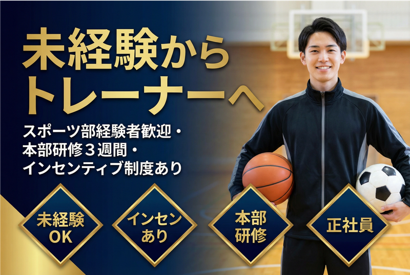 求めている人材 【こんな方に向いています】 ✔ 学生時代スポーツをしていた ✔ 体を動かす仕事がしたい ✔ 子どもが好き ✔ 人に教える仕事に興味がある 【必須条件】 ・普通自動車免許(AT可) 【歓迎条件】 。スポーツ好きの方 ・体育会系 ・接客経験 ・未経験OK