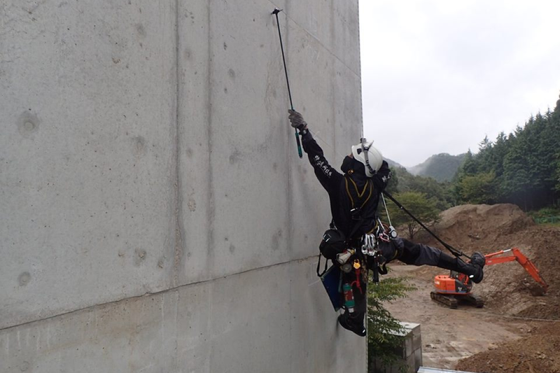企業PR 高所作業車が使えない程の高い場所で、一本のロープに身をゆだねる特殊高所技術者。 高所での作業のため、生半可な気持ちでは決して挑めない仕事です。 そしてそれを理解してくれる社員の家族も守ることが、会社としての使命。 『働き方改革関連認定企業』として、社員ファーストの環境作りに注力。 職場環境の改善には、努力を惜しみません。 大胆に見えて、0.1mmのひび割れを直す繊細さも求められる唯一無二の専門職。 他に類を見ないやりがいを、共に味わいましょう。