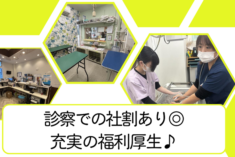【保険制度】 雇用保険、労災保険、健康保険、厚生年金 待遇・福利厚生 【福利厚生】 ◎昇給あり ◎賞与あり ◎交通費支給 ◎慶弔休暇 ◎社会保険完備 ◎育児休業制度 ◎介護休業制度 ◎産前産後休業制度 ◎認定医取得補助あり ◎健康診断費用全額負担 ◎自院診察費用割引制度あり ◎セミナー・学会参加支援制度あり  ̄ ̄ ̄ ̄ ̄ ̄ ̄ ̄ ̄ ̄ ̄ ̄ ̄ ̄ ̄ ̄ ̄ ̄ ✨獣医師さんにインタビュー✨ ⏩どんな職場? ⇒明るく活気のある職場で、スタッフ同士のコミュニケーションもスムーズです。休みも調整しやすく、有給も気兼ねなく取得できます。 また、基本的に19時退社が徹底されており、オンとオフの切り替えがしやすい環境です。無理なく働き続けられる職場づくりをみんなで大切にしています。 ⏩仕事で楽しいと感じるのはどんな時? ⇒難しいケースに向き合い、治療がうまく進んでペットが元気を取り戻した瞬間に大きな達成感を感じます。 また、飼い主さんから「ありがとう」と感謝の言葉をいただけた時は、この仕事をしていて本当に良かったと感じます。 ⏩入社前に不安だったことは? ⇒実は、大きな不安はほとんどありませんでした。 新しい環境への緊張はあったものの、入ってみるとすぐに周りの雰囲気に助けられ、自然と仕事に馴染むことができました。 ⏩どんな人がこの仕事に向いている? ⇒多様な症例に対して、チームで協力しながら取り組める方に向いています。新しい知識や技術にも自ら進んで触れ、学びを楽しめるタイプの方は、特に成長しやすい環境です。 ⏩求職者に向けて一言! ⇒意欲のある人ほど、しっかり評価される職場です。成果に応じて給与も伸びていきます。さらに英語対応の機会が多く、語学力を活かしたい方にはぴったりの環境です。やる気と前向きな姿勢があれば、どんどん成長できる職場なので、ぜひ一緒に働きましょう!