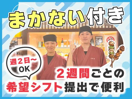 仕事内容 <<この求人のここがポイント!>> ★まずはお試しで…「短期」もOK! ★NAMBAなんなん内で、なんば駅直通♪ ★髪型・髪色自由! ★絶品まかないあり! ★従業員割引あり!お得に焼き鳥の持ち帰りも可能◎ ★週2日~、1日4時間~勤務OK! ★「平日のみ」「土日のみ」の勤務も可能! ===お試し勤務で不安も吹っ飛ぶ!=== 「どんな仕事内容か知りたい」 「働いてみて合うか確かめたい」 「スキマ時間を利用したいけどいけるかな」 など、不安なことも多々ありますよね… 正起屋では、短期での勤務もOK! 試してみて、「合ってるな」と感じたら 長期に切り替えることも可能です☆ ◆カンタンな配膳のお仕事!マニュアル完備で安心です♪ お客様に笑顔と「美味しい」の声を届けるお仕事です! 常連のお客様が多く、アットホームな雰囲気のお店です* なんば駅直結だから、仕事終わりにショッピングも楽しめちゃいますよ♪ ▼具体的には… お客様のご案内・配膳・レジなど まずは簡単なことからスタート! 初めてでも安心! マニュアル完備でサポートもばっちり☆ 少しずつ慣れていってくれれば大丈夫です! イチから丁寧にお教えしますし、 フォロー体制も整えているのでご安心を◎ ◆シフトは柔軟!2週間ごとだから予定に合わせてサクッと調整OK! 週2日~・1日4時間からOK! シフトは2週間ごとの提出だから、 授業やサークルはもちろん、 友達との予定にも合わせやすい♪ テスト期間や長期休みの 帰省・旅行も気軽に相談できるので、 学校とプライベートを両立しながら、 無理なく働けます◎ ■主婦さん、Wワークの方、学生さん活躍中! こんな働き方ができます♪ ↓ ↓ ↓ 朝は少しゆっくりの11:00~なので、 家事を終わらして、 買い物を済ませてからの出勤もできちゃいます♪ お子さまがいらっしゃる方も、 お迎えの時間にも間に合うよう調整OK★ 夜のバイトまで♪とWワークで働く フリーターさんも活躍しています◎ 学校がない日だけ働く学生さんも* ◆接客未経験・ブランクさん・バイトデビューも大歓迎! 「久しぶりの仕事復帰で不安」 「初めてのバイトだけど大丈夫かな?」 「他はやった事あるけど飲食バイトはない」 ・・・そんな方でも大丈夫! 未経験から始めた先輩たちも多数活躍中! 最初は誰でも不安ですが、 わからないことはすぐに聞ける雰囲気なので安心◎ 同世代も多く、学校やサークルと両立しながら 楽しく働ける環境です! ◆焼鳥好き必見!まかない&社割で美味しく節約♪ バイトの楽しみといえば“まかない”! ここでは絶品焼鳥をお腹いっぱい食べられちゃいます☆ 社割で買って帰るのもOKだから、夕飯の心配もなし! 年2回ミニボーナスもありますので、 使い道を考えるのも楽しみですね! 創業から60年以上、大阪を中心に京都や神戸、 名古屋、岡山の焼鳥ファンに愛される味を 満喫できる嬉しい特典です☆ ◆勤務地は「NAMBAなんなん」♪ 「日本橋駅」「なんば駅」の地下から行けるため 雨の日も快適に通勤することができます! 学校帰りでも通いやすい好立地なお店です。 仕事が始まる前、仕事が終わった後に 「買い物」ができるのも大きなポイント♪ 友達と遊ぶ予定を入れたり、ショッピングを楽しんだりと 便利な地域に勤務地があります!