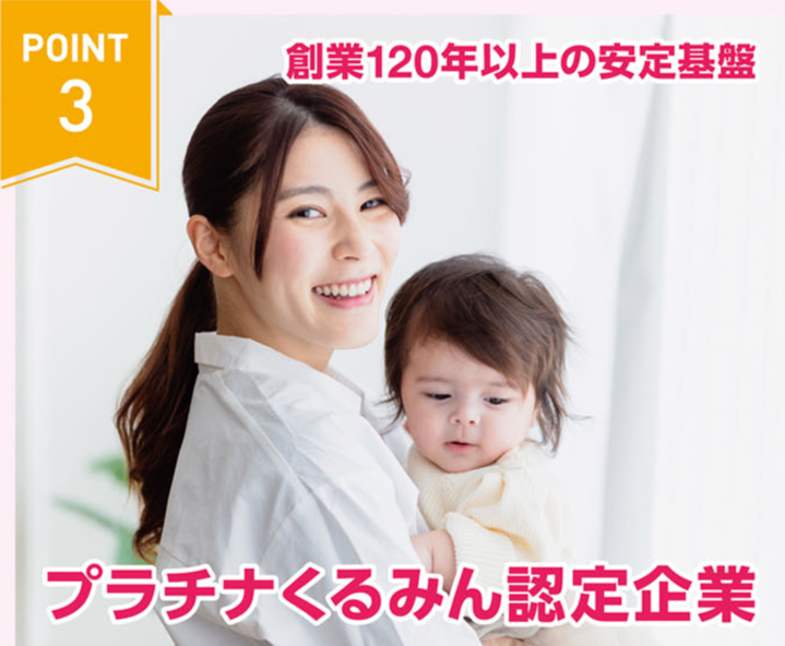 職場環境 女性が長く働ける環境です 17:15定時/残業ほぼなし 完全週休2日制(土日祝) 育児短時間勤務(小6まで) 子育て中・シングルマザー在籍 再雇用制度あり(75歳まで) 「今だけでなく、将来も安心できる」 そんな声が多い職場です。 喫煙所:なし(敷地内全て禁煙)