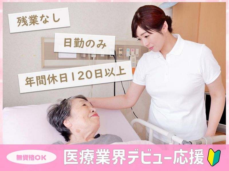 仕事内容 ✨無資格OK!医療業界デビュー応援◎ ✨患者様に寄り添うやりがいあるお仕事! ✨月収24万円以上の安定収入も手に入る! ✨駅徒歩圏内で通勤もラクラク♪ -+-+-+-+-+-+-+-+-+-+-+-+-+-+-+- 【仕事内容】 昭和大学藤が丘リハビリテーション病院にて、看護助手業務をお任せします。 ~具体的には~ ✅患者様の身の回りのケア 食事の配膳や着替えの手伝い、ベッドメイクなど日々の入院生活を快適に送れるようお世話をします。 ✅患者様の移送 車いすやストレッチャーを操作し、検査室・診察室まで患者様の移動をサポートします。 ✅環境整備 病室の清掃やシーツ交換、浴室の準備、また備品の補充や医療機器の消毒などもお願いします。 -+-+-+-+-+-+-+-+-+-+-+-+-+-+-+- ⳻\ 年間休日120日以上⏰ /⳺ 残業はなく、定時上がりでOK! 公私ともに充実させたい方にもピッタリの環境です! 有給消化率も80%以上と高水準! お子様の学校行事など、お休みの希望はお気軽にご相談くださいね! ⳻\ 「ありがとう」がやりがいに⛅ /⳺ 看護助手のお仕事は、患者様と直接接する機会が多く、患者様やご家族から感謝の言葉をもらえることも多々。 患者様の気持ちに寄り添って、不安な気持ちを少しでも緩和できるようサポートしたり、 時には世間話で盛り上がったり、患者様の笑顔がやりがいに繋がります。 「人の役に立ちたい方」「お世話好きな方」そんな方のご応募をお待ちしております!