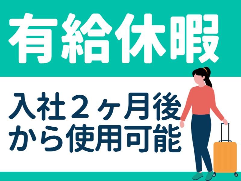 休日休暇 土日休み(祝日は会社カレンダーによる) *年間休日125日 *GW・夏季・お盆・年末年始休暇などの長期休暇あり *有給休暇(2か月後に付与) *慶弔休暇制度あり