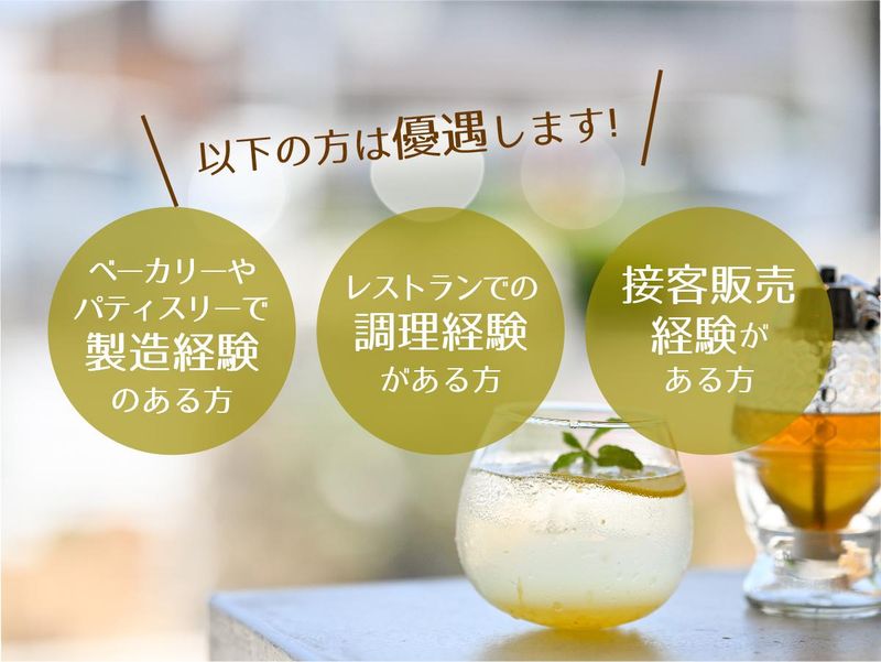 仕事内容 / 新戦力大募集! 一緒に頑張ってくれる 仲間を募集します \ 岐阜市に店舗を構えていますが、名古屋や関東のデパートにイベント出店も行っています。 2026年は北海道・甲信越・四国・九州も巡ります。 さらなるブランド力、商品力・製造力向上を目指すため新スタッフを募集します。 お店に愛着を持って頑張ってくれる人、 喜びも苦労も一緒に分かち合える仲間を大募集! ―――――――――――――――― こんなお店です ――v――――――――――――― HoneyCafe Meetsは、 養蜂家直送の岐阜県産生はちみつが主役のはちみつカフェです。 「はちみつと素材のマリアージュ」をテーマに、 生はちみつを存分に楽しめるメニューを提供している全国でも稀有な専門業態です。 お店で提供しているものはほとんど自家製です。ダイレクトにお客様から評価いただけます。 主なものは ・イングリッシュスコーン ・焼き菓子 ・フランス菓子 ヌガー ・旬のフルーツを使用した季節のスイーツなど カフェとしての営業はもちろん、生はちみつや焼き菓子・ヌガーの販売も行っています。 ―――――――――――――――― 詳細はSNS・WEBより ――v――――――――――――― <Instagram公式アカウント> https://www.instagram.com/honey_cafe_meets?igsh=MWN3cXFzdzJwOXc2aw== <X公式アカウント> https://x.com/honeycafemeets1?s=21&t=fw40s27ylwo8Nz6gLCJZMg < 公式WEBサイト> https://honey-meets.jp/ ―――――――――――――――― こんなお仕事をお任せします ――v――――――――――――― 接客、販売、調理補助や仕込みのお手伝い、ドリンクまでお願いします ―――――――――――――――― 以下の方大歓迎!優遇します! ――v――――――――――――― *パティスリーやベーカリーで製造経験のある方 *製菓・製パン学校出身の方 *スコーンや焼き菓子作りたい方 *レストランでの勤務経験がある方 *専門店・百貨店で接客販売経験がある方 すべてブランクがあってもOKです! ―――――――――――――――― 未経験でも以下の方は大歓迎です! ――v――――――――――――― *明るく元気な方 *積極的に行動できる方 *はちみつが大好きな方 *モノづくりが大好きな方 *パンやお菓子作りが大好きな方 *スコーンや焼き菓子が大好きな方 ―――――――――――――――― ここがPOINT! ――v――――――――――――― *アルバイトから正社員への登用あります! *努力してくれる方はどんどん評価します! *希望があればイベント出店で全国を巡れます ―――――――――――――――― 応募条件 ――v――――――――――――― 週2日以上勤務できる方 土日入れる方(毎週でもなくても可・いずれかだけでも可) 育児がひと段落した主婦(夫)さん、 フリーターさん学生さんもOK!(Wワーク可) 販売業や飲食業での経験をお持ちの方は スキルを活かして活躍できます! シフト希望にも柔軟に対応します 席数の少ない小さなお店ですので、 規則も少なく自由な風潮の職場です。 ただ仕事は一生懸命、体力的にもそれなりにハードです。 そのあたりを理解している方のみご応募ください。