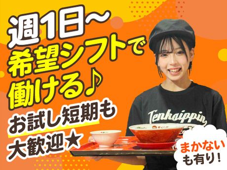 仕事内容 \注目!人気のお仕事条件そろってます!/ ■車・バイク通勤OK! ■週1日~、1日3h~◎ 家事のスキマ時間で稼げる! ■まかない無料!!食費節約!! 天一のラーメンがタダで食べられる◎ 餃子や天津飯、丼物など 好きなメニューを選んでね☆ ■注文はタッチパネル式◎ レジも自動釣銭機なので楽々!! ■初バイト・初パートさんも多数活躍中! 居心地の良さから皆長続き◎ 【お任せするオシゴト】 <ホール業務> お客さまのご案内、 飲み物・料理の配膳や テーブルの片付け、 レジ案内などをお願いします。 *オーダーはタッチパネル式なので ハンディも必要なし! *レジも自動釣銭機なので ミスの心配もなく操作もラクラク◎ 最初は、メニューを覚えることや、 笑顔での「いらっしゃいませ」から 始めていきます♪ 初バイト&未経験でも大歓迎! マニュアル完備で安心♪ 楽しく稼ぐならここで決まり! 融通バッチリ!長期で活躍するスタッフも多数☆ 「ランチのみ希望」「平日だけ」 「子どものお迎えまでには帰らないと」 「週末ならフルで入れる!」 「Wワークのスキマ時間で…」 など…なんでも相談OKです! 子育て世代の方も多数活躍中!! 「急にこどもが熱で…」といったときも皆でフォロー! 安心して長く働ける環境が揃っています◎ \ 履歴書不要!沢山のご応募をお待ちしています! / 楽しくアルバイト・パートをするなら天下一品で決まり◎ 面接日程はもちろん、新生活が落ち着いてから勤務したい…など、 勤務開始日についても、お気軽にご相談ください! 無理のないスケジュールですすめていきましょう!