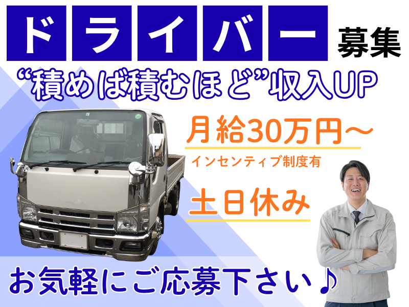仕事内容 【具体的なお仕事内容】 ・リフォーム等で出た木・鉄・プラ等の廃材を2tトラックへ積込 → 自社倉庫(豊中)や契約処分場へ運搬 ・1日4〜6現場程度。2名体制が基本(※単独も可。稼ぎたい方は単独案件多め) ・現場状況により台車使用、階段のみの現場もあり ・走行距離150〜200kmになる日も(エリア:滋賀・大阪・兵庫など関西一円) ◆免許がなくても応募OK(準中型の取得支援あり) ◆直行直帰OK!