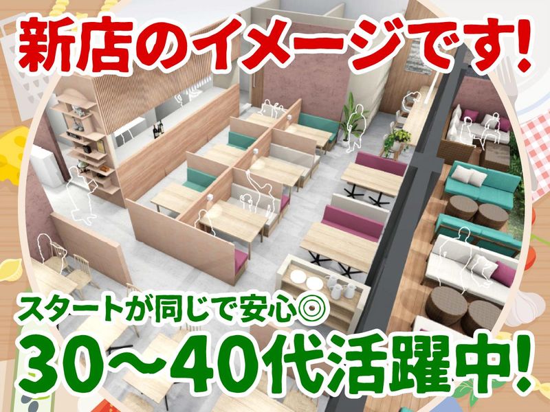 職場環境 既存店では、ご近所の主婦(夫)さんや ご家族を中心に幅広い年代の方々が利用されています◎ 日頃のランチやディナーだけでなく、 デートや女子会、歓送迎会など 様々な場面でご利用いただいているお店です! 常連さんもたくさんいらっしゃいます♪ 受動喫煙対策あり(屋内禁煙)