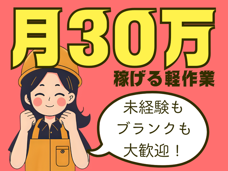 アピールポイント: 20代~40代の同世代の仲間が たくさんいるから始めやすい! 時給1350円でサクッと稼げます! シフト次第で月30万も目指せる! * 夜勤・交替のシフトが選べる * 好きな時間帯で自由に組み合わせOK * 時給1350円/深夜・残業は1688円! * はじめは日勤からスタート * 未経験OKのかんたん作業 * 週休2日制(火曜+好きな曜日) * 1か月ごとにシフトが決定! * 職場見学OK * 車、バイク通勤OK * JR前空駅から徒歩20分 * 交通費規定支給 ===前払い制度あり=== 日払いも、週払いもOKです! 今月ピンチ…そんな時に超便利! スマホのアプリでサクッと申請! \お気軽にご相談ください!/