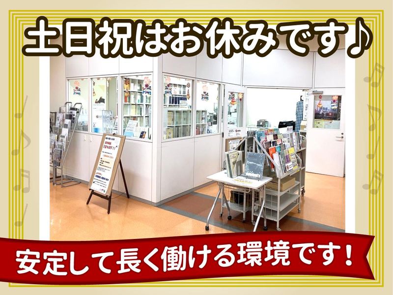 仕事内容 +。♪*。#+。♪*。#+。♪*。#+。♪*。 \昭和音楽大学のキャンパス内のお仕事/ - 楽譜や音楽に囲まれた環境で、 音楽好きにはたまらない職場です! ♫ 基本的に平日のみの勤務、土日祝はお休み! ♫ 駅チカのキレイなキャンパス! ♫ 長期で安定して働ける職場です! ▼お仕事はコチラ ・楽譜・書籍・雑貨の接客やレジ対応、販売 ・商品の在庫管理や発注業務 ・売上入力など、簡単なPC作業 そのほか、売場のレイアウトやPOP作りで お店づくりの楽しさも味わえます! 困ったときは、 頼りになる先輩スタッフが しっかりサポートするので 安心してくださいね♪ +。♪*。#+。♪*。#+。♪*。#+。♪*。