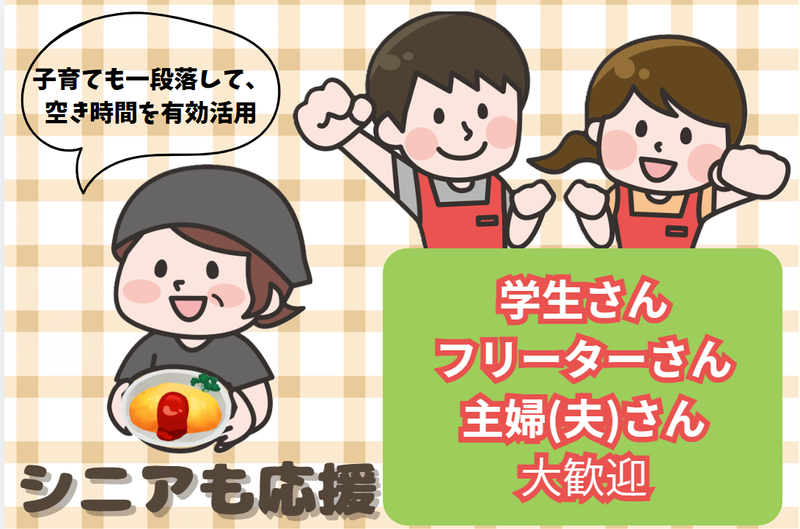 仕事内容 \ ホール・キッチンスタッフ大募集 / \ パートデビューも歓迎! 高時給1200円/ -・-・-・-・-・-・-・-・-・-・-・ <<大歓迎>> 「平日の夕方」 「週末は全時間帯」 -・-・-・-・-・-・-・-・-・-・-・ 気さくで楽しい仲間がいっぱい♪ 上下関係を気にせずノビノビ働ける♪ 幸せの黄色いおむらいす店! おいしいまかないもあり◎ なんと無料です♪ まずは出来る事から始め、 徐々に仕事の幅を広げていきましょう。 <お仕事内容> 【ホール】 接客や料理提供をお願いします。 モバイルオーダー式だから オーダーとりもレジ業務も 覚えることも少なく、安心して 始められます。 【キッチン】 簡単なトッピングや調理補助・洗い場などの お仕事です。 イチから丁寧にお教えしていくので、 安心してスタートできる環境ですよ! -・-・-・-・-・-・-・-・-・-・-・ 学校行事や部活・サークルとの 両立を目指す学生さん がっつりシフトに入りたいフリータさん 他の仕事と調整して稼ぎたいWワークさん 家事や子育てと両立したい主婦(夫)さん など幅広く大募集中! 「遊びの資金に」「趣味に」など 始める理由は様々。 -・-・-・-・-・-・-・-・-・-・-・ 気になった方は ホームページもご確認ください! https://ys-holdings.co.jp/omuraisutei/