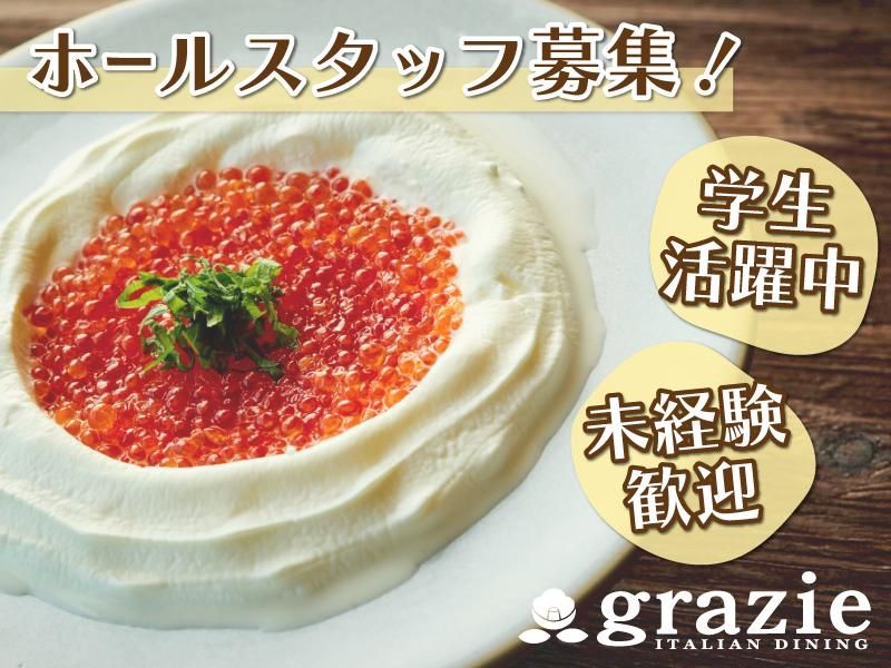 仕事内容 / SNSやTVで話題を集めるオシャレなイタリアン酒場! 東京で初OPENした渋谷駅スグの駅チカ人気店です✨ \ グラッツェ=「ありがとう」。 『ありがとう』の気持ちで溢れた オシャレダイニング「グラッツェ」で、 ホール(接客)のお仕事をお任せします! 昨年8月のOPEN以来、早くもメディアで話題を集め、 Google口コミはありがたいことに2026年1月時点で 579件(星4.8)の評価をいただいています✨ そんな人気のイタリアン酒場のスタッフとして、 素敵な笑顔と接客をお客様にお届けしましょう! 【具体的なお仕事は】 お客様のご案内や料理のご提供、お会計、 予約の受付など、一般的な飲食店での接客のお仕事です。 まずは簡単なお仕事から始め、お客様に喜んでいただける 「接客スキル」を徐々に身に付けることができます! また、誕生日や記念日などお祝い事のサプライズをする機会も多いため、 サプライズのお手伝いなど、いつもとは違った接客を楽しめます! お仕事は先輩スタッフがそばでサポートするので、 未経験の方も安心してご応募くださいね! オープニング募集だから新しいことを始めるのにピッタリ! オープンしたばかりのグラッツェで、楽しくオシゴトしませんか? \グラッツェの「ココ」がイイ!!/ [1]シフト自由! 週1日~、1日3時間~シフト相談OK! 日数や曜日、時間帯なども希望をしっかり考慮しますので、 自分らしく働くことができるお店です。 学校や遊びの予定と両立がしやすく、 学生さんやフリーターさんなどにオススメです! [2]バイトデビューにもオススメ! 学生・フリータースタッフが中心に活躍中! 未経験から始めた同年代のスタッフが多く、 グラッツェで早くも友達ができた人が多数* お仕事は簡単なことからお任せするので、 初バイトの方も安心です! [3]オシャレも楽しめる! 20代のスタッフが多いグラッツェでは、 オシャレを楽しんでいる人も多数! 髪色もピアスも自由です! 制服もカワイイ&オシャレだと大好評* バイトを始めるから黒染めをしなきゃ・・・ なんて心配もしなくても大丈夫ですよ。 (「清潔感」だけは大切にお願いします!)