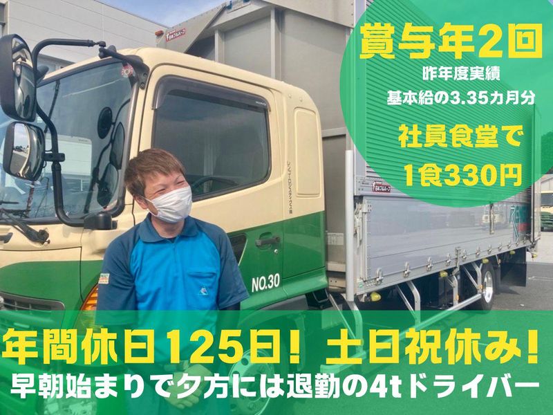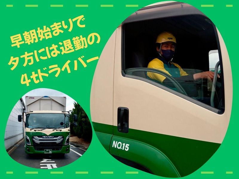 職場環境 *・。*・。*・。*・。*・。 ✦4t運転⼿は10名、 2~3t他大型含めると26名 ✦20〜50代の男性が活躍中 ✦⻑期勤務のスタッフが多数在籍中︕ ✦上場企業、レンゴー株式会社の 100%出資の運送会社です。 *・。*・。*・。*・。*・。 喫煙所:喫煙所あり(屋外)