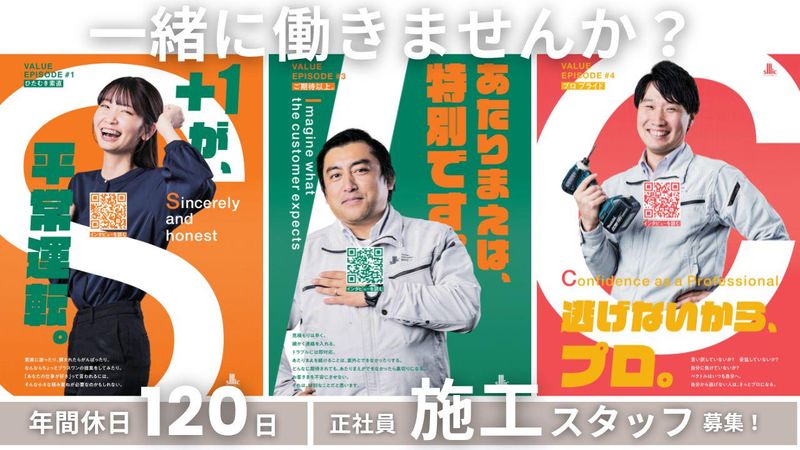 求めている人材 <<未経験者歓迎!人柄重視の採用です>> 「チームで働く」「目標を持つ」のが好きな方に ※必須条件:高卒以上 / 普通自動車免許 【求める人物像】 ・常に目標を持ちながら仕事に取り組める方 ・指示を待たず、自分で考え行動できる方 ・新しい環境で自己成長していきたい方 ・明るい対応ができ、一般常識がある方 *住宅に関する特別な知識や経験不問! *普免以外の資格不問(無資格歓迎)! *第二新卒歓迎!長く働きたい方大歓迎! -------------------- 【先輩スタッフより】 リフォームの現場で、 壊れたものをよみがえらせる瞬間は 『自分ってすごい!』って思えるんです。 向上心を持って仕事に取り組める方なら スキルはどんどん身に付くんじゃないかな。 この仕事の特徴を面白いと思える方と 一緒に働きたいですね。 -------------------- 建設作業員、現場作業員、土木作業員、 解体作業員、設備工事作業員、現場監督、 建築施工管理、建築士、内装工事、設備工事 といった建築業、建設業に興味ある方歓迎! 年齢の条件と理由:あり(例外事由3号のイ・29歳以下(長期勤続によるキャリア形成のため))