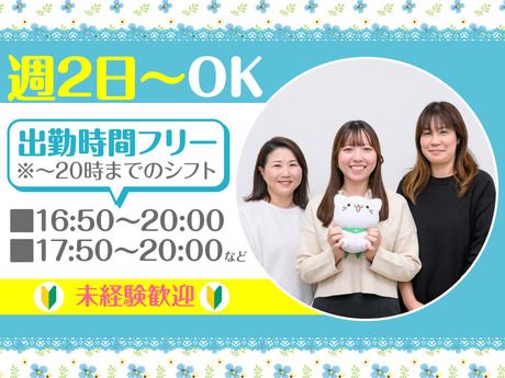 シフト制 勤務時間 \シフト★超自由/ 出勤時間は、14:00、1:00、16:00等柔軟に対応◎ 曜日によって出勤時間の変更もちろんOK! 週10時間程度の勤務から【終業時間20:00】までできる方大歓迎!!! ▼働き方のイメージ 14:50~20:00(5h) └1日5h×2=週10h 15:50~20:00(4h) └1日4h×3=週12h 16:50~20:00(3h) └1日3h×4=週12h 17:50~20:00(2h) └1日2h×5=週12h その他シフトパターン多数相談OK!