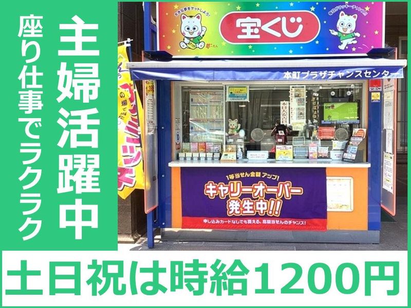 仕事内容 \\ 宝くじ販売窓口スタッフを募集 // <40~50代の女性スタッフを中心に活躍> 主婦・主夫歓迎!ブランクがある方も歓迎! ※土日祝は時給100円UPで効率よく稼げる※ ・・++・・++・・++・・++・・++ 〇『冷暖房設備』×『座り仕事』=快適!〇 <<業務に慣れたら売り場を一人で担当>> 自分のペースで、のびのびと働きたい方に! ・・++・・++・・++・・++・・++ 【仕事内容】 宝くじ売り場での業務全般をお任せします! 【具体的に】 *宝くじやスクラッチなどのくじ販売 …紙くじ・数字選択式宝くじ など *当せん券をお持ちの方への換金対応 …一定額以上は銀行対応のため安心! <<<【当せん結果は機械にお任せ】>>> 機械が判断するので対応も簡単にできます! 自分の渡したくじが当選した!なんて嬉しい 報告をもらうこともあり、やりがいは抜群! <<<【座り仕事のため負担少なめ】>>> もちろん冷暖房完備!「夏は暑く、冬は寒い」 なんてこともなく、体の負担なく働けます。 <<<【丁寧なOJT研修で活躍可能】>>> 未経験スタートでも安心していただけるよう 各種研修・マニュアルをご用意しています! ※2026年4月1日、合併により 「日本宝くじ販売株式会社」に社名変更予定。 ・・++・・++・・++・・++・・++ \ 夢を届ける仕事で、私らしい働き方 / 40代女性スタッフ 「家族との時間を優先できる勤務スタイルが 気に入ってます。すぐ相談できるのも安心」 50代女性スタッフ 「お客様からの『ありがとう』がやりがい。 短時間勤務で自分の予定も優先できます。」