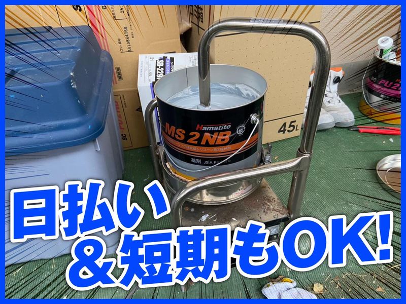仕事内容 □週2日~OK!休憩時間はたっぷり2時間♪ □日払いOK!働いた分の収入を即GET★ □会社負担で様々な資格が取れます! <お仕事の流れは…?> まずは東灘区の事務所に集合して 一緒に車で現場へ向かいます◎ 直行直帰も可能です! マンションなど建物の シーリング工事・補修作業をお願いします! シーリング工事は… 建物の外壁や窓枠などのスキマに、 ゴム状の弾力性がある「シーリング材」をいれていく工事です! 主に扱うのはシーリングガンと呼ばれる片手で持てるくらいの 大きさの器具で、重たい器具を扱うことはありません◎ 未経験の方はハケで壁のひび割れ等を ペタペタ塗ったり道具を取ってもらったり 簡単な作業からお任せしていきます◎ 補修作業が初めての方も丁寧にサポート! 難しい作業はほとんどありませんので ご安心くださいね♪ 休憩時間もしっかり取っているので ちゃんと休みながら勤務できますよ◎ ゆくゆくは経験を積みながら 資格を取ってキャリアアップも可能★
