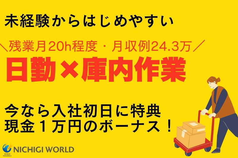 こつこつ庫内作業*食堂がリーズナブル*日勤で働きやすい*程よく残業あり*長期休暇あり*履歴書不要