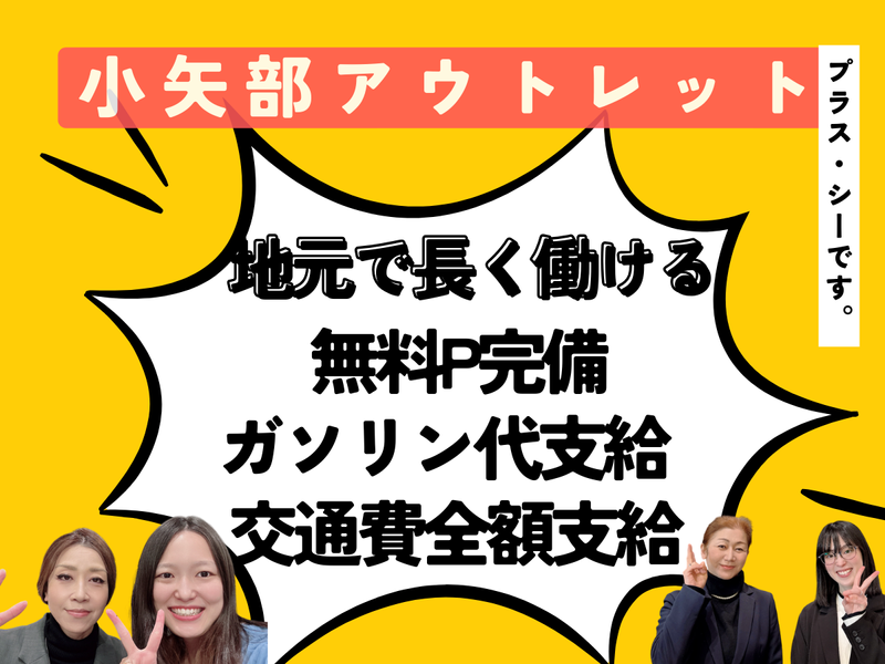 求めている人材 ✅こんな方におすすめ ・人と話すこと、おしゃべりが好きな方 ・アパレル・雑貨・インテリア・飲食店などで接客経験がある方 ・販売経験をもう一度活かしたい方 ・子育てが落ち着き時間にゆとりができた方 ・少ない日数から無理なく働きたい方 ・落ち着いた接客を大切にしたい方 ・体力と相談しながら長く働きたい方 ・人生経験やコミュニケーション力を活かしたい方 ✅雇用先と勤務先について 小社は販売代行運営を行っている会社です。 今回の募集も代行運営店舗でのご勤務となります。 雇用先:株式会社プラス・シー直接雇用 勤務先:三井アウトレットパーク 北陸小矢部 各店舗
