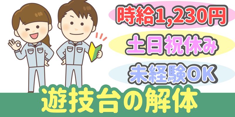 仕事内容 遊技台を取り扱う工場でのオシゴト ドライバーを使用して遊技台の解体をお願いします 人気のもくもく×コツコツ作業は早い者勝ち! 出張面接いたします!就業前の職場見学OK! まずはご応募ください! 18歳~50代前半の男女活躍中 ・就業場所は、藤の台工業団地内 オススメpoint ・うれしい土日祝休み ・午前、午後に小休憩あり リフレッシュできます ・ロッカーあり ・駐車場完備 らくらくマイカー通勤OK ・未経験OK ・土日祝休みが良い方 ・日勤のお仕事お探しの方 ・長期で働きたい方 ・シンプルワークご希望の方 ・残業ほぼナシ!定時にピタッと退社 【こんな経験活かせます!】 パート、アルバイト、契約社員 雇用形態問わず、下記の経験ある方は活かせます! ・倉庫内(構内)作業 ・製造 ・工場 ・解体 ※もちろん必須ではありません! まずはお気軽にご応募ください ///////////////////////////////////////// (WEBでご応募の場合) お電話番号を記入していただくと ご案内がスムーズです。 /////////////////////////////////////////