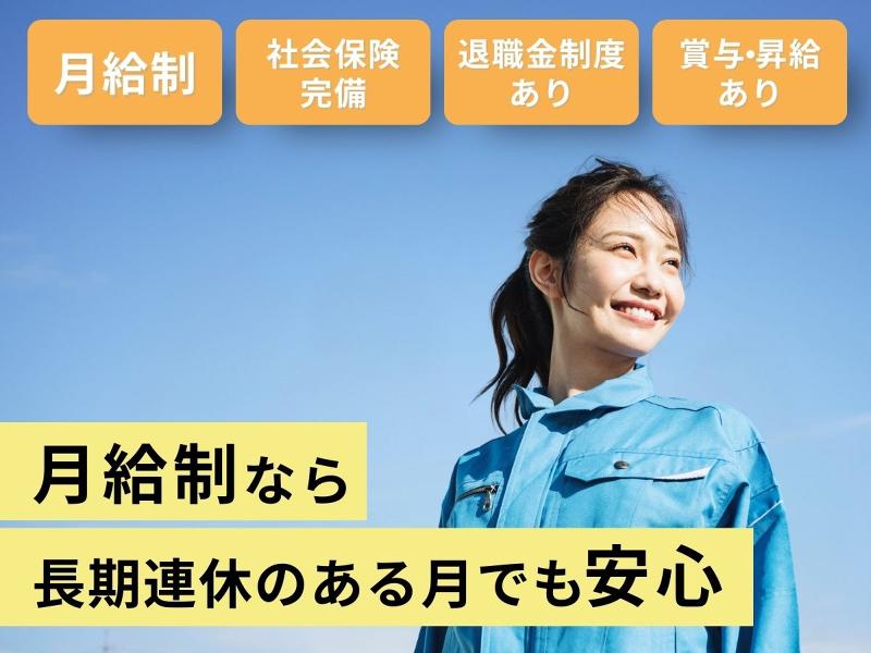 アピールポイント: ▼おすすめポイント! ✅大人気の日勤&土日休み! ✅「月給制」で長期休暇のある月でも安心です。 →長いお休みがあっても、翌月の給与振り込みが心配になることはありません。 ✅困った事やちょっとした相談事も当社の担当が親身にサポート。 →ご応募の受付からずっと同じ担当者があなたの就労をサポートいたします。 ▼通話料無料の問い合わせ先はコチラ↓ 0120-873-908(8:00~18:30受付)