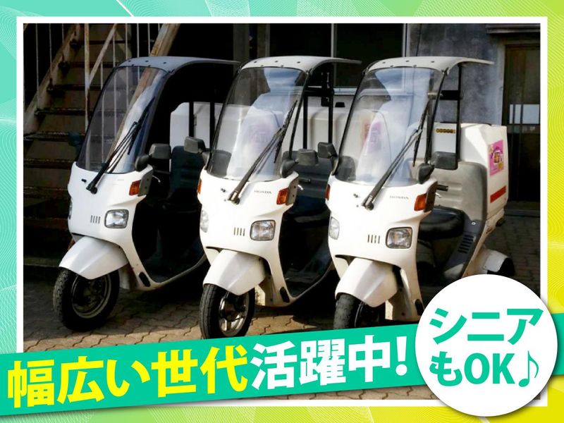 仕事内容 お弁当だけではない! 「まごころ」や「笑顔」もお届け★ \\配達というより地域の見守り係// 高齢者の方向けお弁当の配達をお任せ! ただお弁当を届けるのではなく、 スタッフみんな 「Aさんは腰悪くしてたけど大丈夫かな」 「Bさんはお孫さんと週末どこに行ったのかな」 なんてことを考えながら配達しています笑 毎回届けていたら、きっとあなたも 自然と仲良くなれて、何気ない会話を 楽しみにしてしまいます♪ お客さんから 「いつも話聞いてくれてありがとう」 「毎回元気な顔見せてくれて嬉しい」など 声をかけられることもあり やりがいに繋がります☆ 温かいスタッフ・お客さんばかりで 高齢者の方を日々見守る感覚で みなさん楽しく働いています!! \お仕事内容/ ルート配送なので一度覚えれば 未経験の方も安心☆ 丁寧な研修もあるので、スグに慣れますよ♪ すべて屋根付きの三輪バイクで雨の日も安心! 重たいものを持つことはなく、 体に負担なく働けます。 シニア世代も元気に活躍中♪