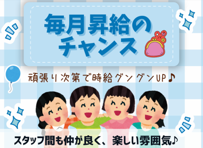 時給1,100円以上 給与詳細 基本給:時給 1100円 〜 ※高校生は時給1050円~ ◎毎月昇給のチャンス! 頑張り次第でグングン上がります★ 3か月連続で昇給したスタッフもいます。 やりがいがあってテンション上がりますよ! 【給与例】 給与例 \ サクッと稼げる! / 週3勤務の場合 └月収6万6000円(時給1100円×5h×12日)