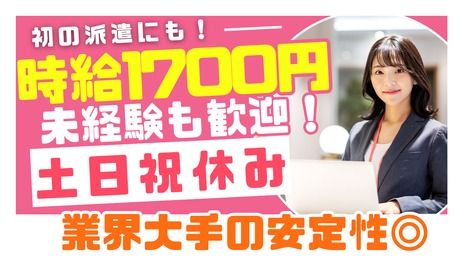 時給1,700円以上 給与 時給 1700円以上 日払い・週払いOK(規定) 交通費:交通費支給