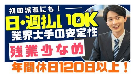 職場環境 【従業員構成】 未経験スタートの幅広い年代の方が活躍しています! フォロー体制も整っている職場環境なので安心してご応募ください。 働きやすい環境で定着率もバッチリです◎ 【働く上でのお悩み相談も随時対応で安心♪】 1日のほとんどの時間を過ごすことになる「職場」 当社のスタッフには生き生きと働いてもらいたいと強く思っております! なので職場での人間関係や、業務内容の不安などどんなことでも 気軽に相談できる専属担当をしっかりつけています! 定期面談の実施や、何かあった際にすぐに相談できる存在として貴方を全ポート! ストレスなく働けるクリーンな職場をご提供します◎?? 【職場の雰囲気】 落ち着いた職場 個性が活かせる 業務外交流多い ビジネスライク 力仕事が少ない 決められた時間できっちり 知識、経験不要