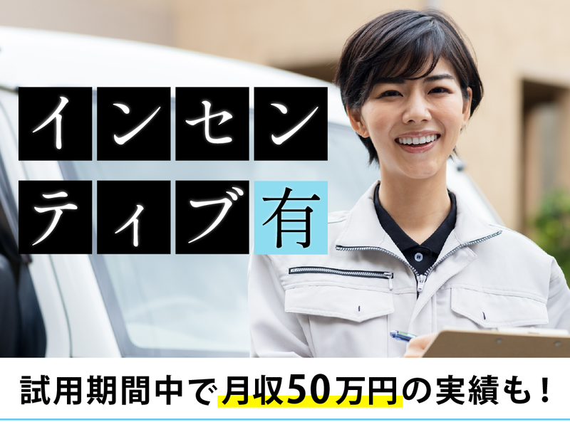 仕事内容 飛び込み営業は、正直タフな世界です。 だから、私たちは8人1チーム。 褒め合う、励まし合う…だけじゃなく、 時には背中を預け合うような、 戦士みたいな関係を築いています。 例えば、急な用事で休むとき。 申し訳ない…なんて思わなくてOK! あなたの代わりはいないけど、 あなたをフォローできる人はいる。 「今日休んだ分、明日がんばろう」 と前向きに考えられるなら、 お互い様の精神で堂々と休みましょう。 稼ぎたい気持ちも、面倒見の良い性格も、 このチームならプラスに変わります。 信頼できる仲間と、胸を張れる仕事。 そして、納得のいく報酬。 あなたの「新しい挑戦」を、 私たちは全力でバックアップします。 -・-・-・-・-・-・-・-・-・-・-・-・-・-・-・-・-・-・-・-・- ⏩”お節介”が武器になる。  ̄ ̄ ̄ ̄ ̄ ̄ ̄ ̄ ̄ ̄ ̄ ̄ ̄ お任せするのは、外壁塗装の飛び込み営業。 【戸建て】のお客様を訪問し、 お家の状態に合わせた工事をご提案します。 「あそこひび割れしてますよ」 「一部だけ色が剥げてしまっています」 お客様にとっては”見栄えの悪さ”でも、 家にとっては”歪みの原因”となることも…。 だから私たちは、そこに一歩踏み込んで 未来の家を守っているんです。 ■塗装工事のご提案 ■提案資料や見積書の作成 ■施工スケジュールの管理 など 細かい所に良く気が付けるなら、 それは当社の訪問営業にピッタリの才能✨ 胸を張って”営業モード”の自分で戦える。 そんな環境で、あなたの面倒見の良さを 発揮してみませんか? -・-・-・-・-・-・-・-・-・-・-・-・-・-・-・-・-・-・-・-・- ✧ 求人のポイント ━v━━━━━━╯ ✅【研修】動画+AIで営業スキルを可視化 ✅【実践】先輩同行や模擬商談あり! ✅【休日】完全週休2日(シフト制) 経験やスキルはなくてOK! 諦めずポジティブに取り組める方なら、 きっとスグに結果を出せるはず✨ 試用期間中に月収50万円以上達成 という実績も作ったことがある、 抜群のフォロー体制でお待ちしています◎ ※早い方は1年以内に幹部に昇格可能! 昇格後は飛び込みが減り、 管理業務などがメインとなります。