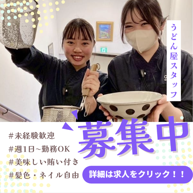 うどん屋のランチタイムホールスタッフ