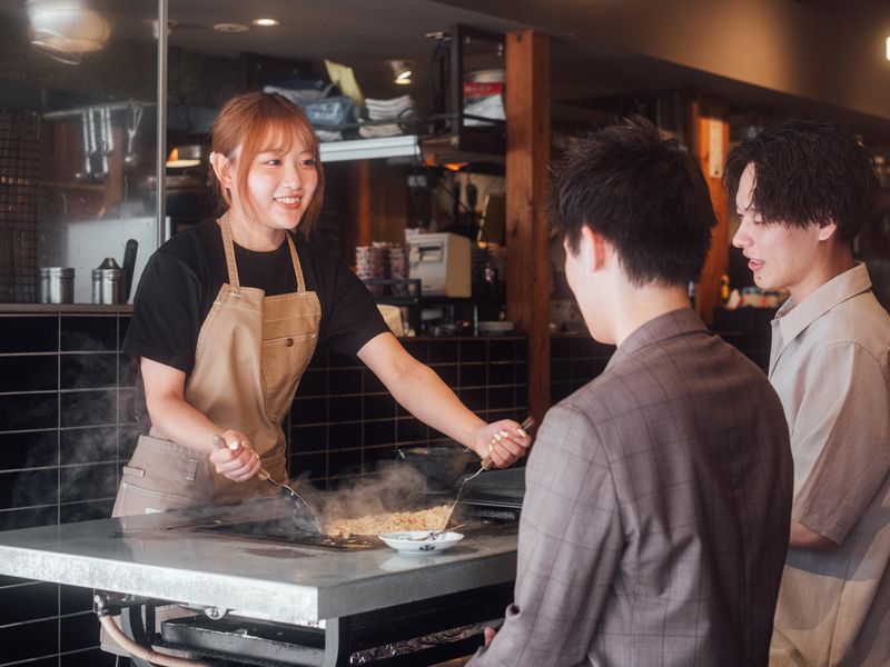 昨年オープン|人気もんじゃ焼き店のホール・キッチン