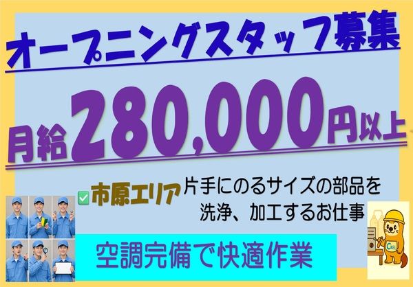 仕事内容 スマホくらいの大きさの製品に部品を洗浄、加工していく作業です。 スピードより丁寧さを重視してますので、ライン作業が苦手な方にもピッタリ! 自分のペースでお仕事OK!工程により座り作業になります! 昨年スタートしたばかりでピカピカの新工場! 空調完備なので季節関係なく快適◎ 日勤&土日祝休みなのでプライベート充実! 安定した収入を得たい方にも最適な環境です。 お仕事復帰を考えている方、工場勤務に興味がある方、まずは工場見学へお越し下さい! \\ この求人のココがおすすめ // ✎ 未経験・ブランクのある方、大歓迎! 学歴・経験不問!特別なスキルも不要! ほとんどのスタッフが未経験スタート! 既存スタッフが優しくレクチャーしますのでご安心ください◎ もっと安定して働きたいという方には正社員登用あり! ✎ 給与週払い制度あり 急な出費にも対応できるのが嬉しい♪ もちろん月払いもOK! 残業なしで月収約24万円程可能◎ ✎ リモート登録実施中&即日・当日登録OK 応募したその日に来社不要で登録完了♪ スグに働きたいという方必見!! ◆ 業界未経験者大歓迎 ◆  ̄ ̄ ̄ ̄ ̄ ̄ ̄ ̄ ̄ ̄ ̄ ̄ ̄ 以下の業界での勤務経験のある方も活躍中! ・自動車整備業界 ・物流・運輸業界 ・飲食業界 ・小売業界 ・サービス業界 ・アミューズメント業界 ・インフラ業界 ・ホテル業界 etc.