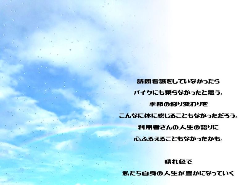 仕事内容 【応募の条件は資格があれば歓迎です】 ■正看護師免許 ■原動機付き自転車運転免許 (原付の運転が難しい方は、車での訪問も可能) 【下記項目に1つでも当てはまれば歓迎】 ✅ブランクがあっても勤務できる職場で働きたい ✅夜勤がなくてプライベートも充実したい ✅扶養内で勤務したい ✅未経験からスタートしたい ✅バイクが好きな方! 【アピールポイント】 ■人材紹介を介さず、直接入社の方限定の謝礼あり(4月・5月入職者限定) ●お祝い金5万円贈呈! ●仕事で使用するリットマンの聴診器プレゼント ●バイクでの業務にご協力いただける方には、 ヘルメット、グローブ、雨具 プレゼント ※当社規定あり。 詳細は面談の際にご確認ください。 ■未経験、ブランクの方も歓迎 ■訪問すればその分歩合で還元 ■入職時期は相談可能 【お願いするお仕事内容】 ■バイタルサイン測定 ■カテーテル管理 ■排便コントロール ■内服管理 ■清潔ケア ■日常生活指導など 【晴れ色について】 ・訪問するエリアは松山市を中心となっております。 ・事業拡大のため、スタッフ増員を予定。 ・1日5件程度の訪問 ・直行直帰OK ・他事業より1時間短い 7時間労働!! 家庭やプライベートと両立しながら働けます! ・未経験の方やブランクのある方でも 研修・ミーティングを定期的に実施しています。 みなさんで相談しやすい職場環境にしていっています。 ・Wワークも可能で、常勤になる前にパートからの入社もOK! まずは職場を見てみたいという方は1日体験など歓迎です