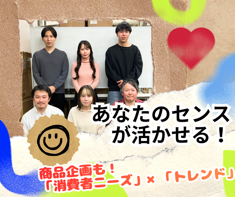 求めている人材 20代、30代の女性スタッフが多数活躍中です! 【優遇】 ・アパレル業界での生産管理や営業事務に携わった経験をお持ちの方 ・計画通りに商品が、出荷できるために関係各所に折衝する経験をお持ちの方 【歓迎】 ・第二新卒者の方 ・異業種から挑戦したい方 ・アパレル業界に興味が有る方 ・人と会話をするのが好きな方 【こんなみなさんへ】 ・商品知識はもちろん、業務に基本から全てお教えしますのでご安心下さい。 ・自分のディレクション能力で全国各地に商品を流通させる楽しみややりがいを実感してみてください。 ※性別を問わず活躍できる環境が整っています。