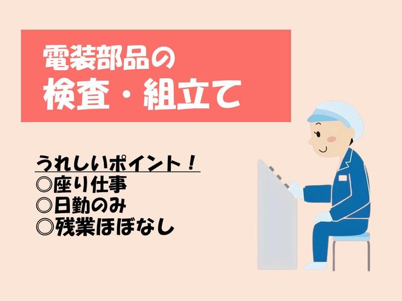 仕事内容 ✅手のひらサイズのかる〜い製品 ✅日勤専属 ✅女性活躍中 ✅未経験の方大歓迎 ✅土日休みでプライベート充実 ✅髪色・ネイル(付け爪NG)自由 ▼かる〜い電装部品を検査・組立てするお仕事です! 冷暖房完備のキレイな工場で、快適に働けます◎ し!か!も!!!!! 【大注目】座り仕事です✨✨ そ!し!て!!!! 【嬉しい】駅チカ、徒歩1分✨✨ 【検査・組立て業務】 ➀電装部品を手で組付け ↓ ②目視で傷が無いかチェック 20代30代40代 活躍中のお仕事です! 津市で日勤専属のお仕事を探してる方、必見です! ■未経験の方が8割以上です! 土日休み!予定も組みやすいです。 ■メリット 日勤で安定して働けるお仕事! 社員さんも優しく快適な環境で作業できます♪ 職場見学が出来るので、まずは職場の様子を実際に見にいきましょう! お気軽にお問い合わせください♪ 作業はマニュアル化されていて安心 入社後は先輩がマンツーマンでしっかりサポート ▼こんな方におすすめ ・未経験から製造業にチャレンジしたい方 ・明るくてきれいな職場で働きたい方 ・職場で髪色は自由でいたい方 ・プライベート充実させたい方