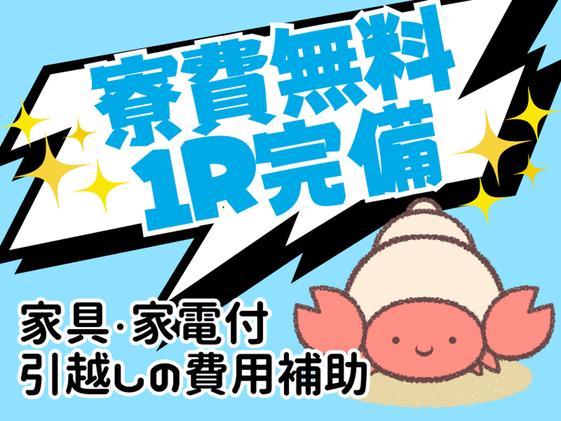 アピールポイント: \大人気の日勤シフト×土日休み/ 人気すぎて入社枠は残り2名だけ! * 今だけ!入社祝い金40万円! * 寮費無料! * 家具・家電完備の1R寮完備 * 無料送迎あり * マイカー通勤もOK◎ * 20~30代の男女スタッフ活躍中! * 未経験OK! * 友人と一緒に応募もOK! * 空調完備で快適な職場◎ * メニュー豊富な食堂あり ===前払い制度あり=== 日払いも、週払いもOKです! 今月ピンチ…そんな時に超便利! スマホのアプリでサクッと申請! \お気軽にご相談ください!/
